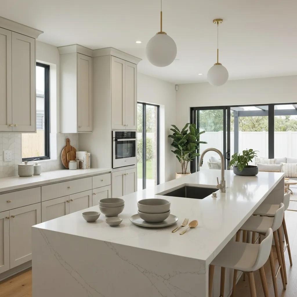 Fort Lauderdale kitchens increasingly favor waterfall-edge islands with bookmatched quartz veins and matte finishes. Coastal palettes—soft grays, seafoam greens, and sandy beiges—reflect local surroundings. Integrated under-mount sinks and seamless solid surface backsplashes streamline cleaning and enhance Gulf-coast aesthetics.